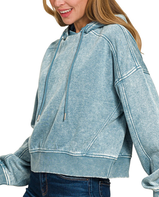 Acid Wash Fleece Cropped Hoodie