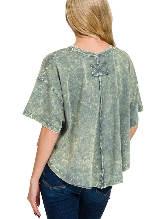 Crinkle Washed Cotton Round Neck Short Sleeve Top
