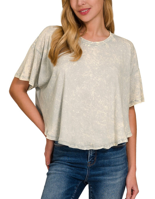Crinkle Washed Cotton Round Neck Short Sleeve Top – Relaxed Fit, Vintage Soft Feel