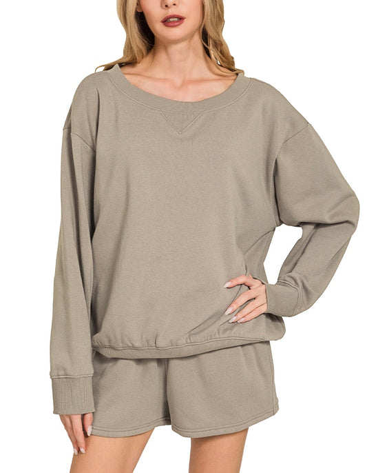 Fleece Boat Neck Sweatshirt & Short 2pc Set