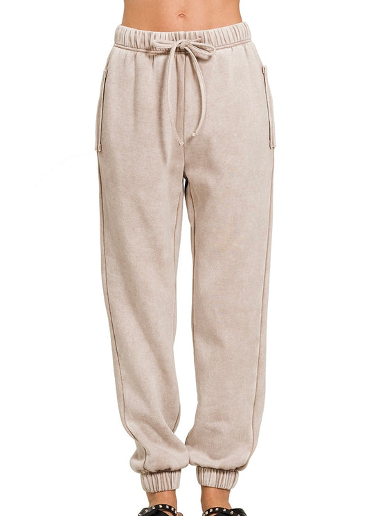 Acid Wash Fleece Jogger Sweatpants with Pockets