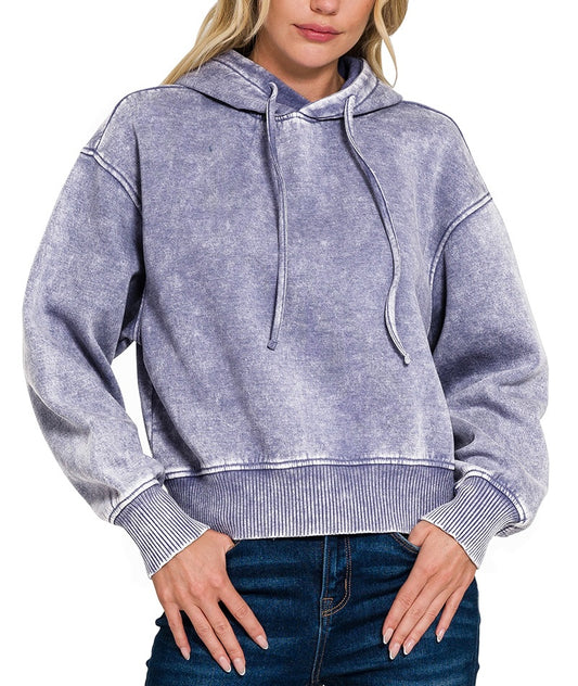 Acid Wash Fleece Cropped Full Zip Hoodie