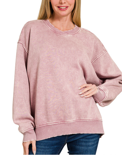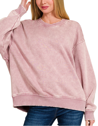 Acid Wash Fleece Oversized Pullover