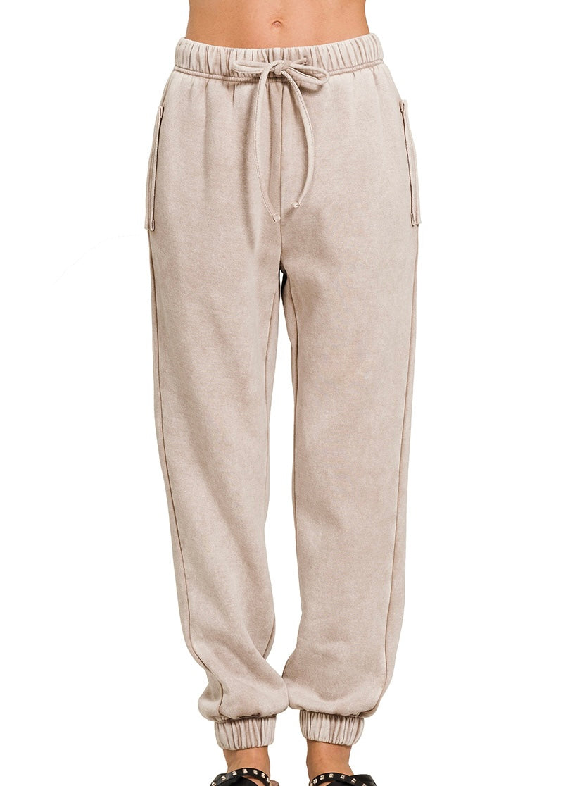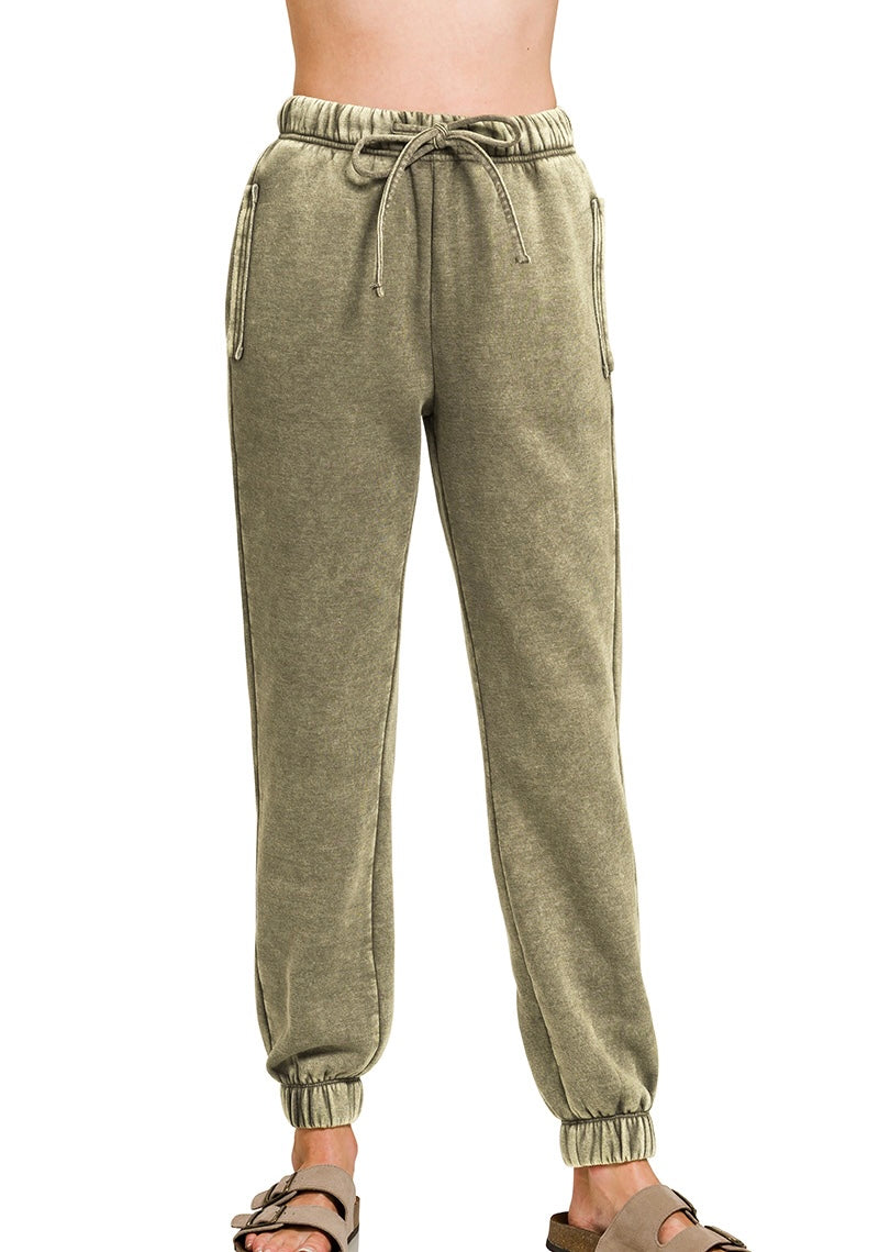 Acid Wash Fleece Jogger Sweatpants with Pockets