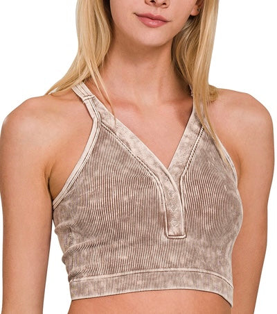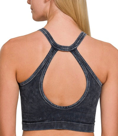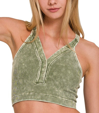Super Buttery Soft Acid Washed Seamless Ribbed V-Neck Bralette