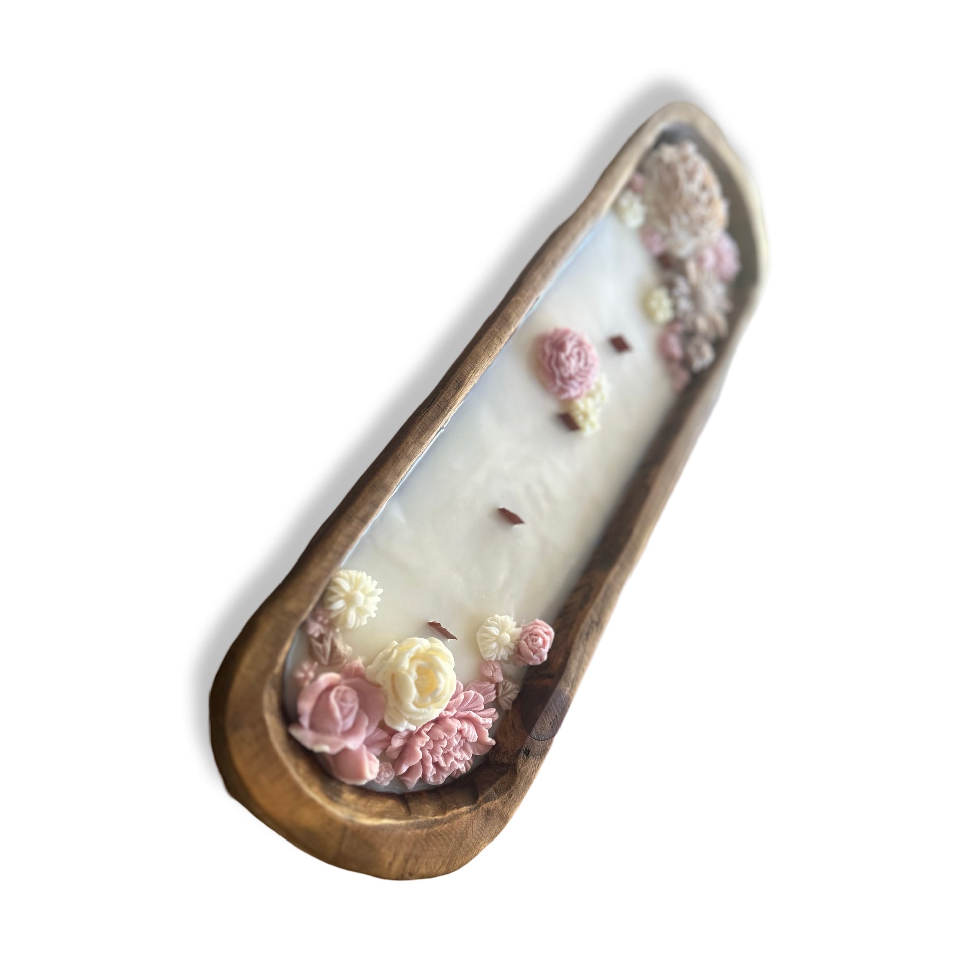 The Flower Garden Candle from our signature Botanical Garden Candle Collection contains a me beautiful assortment of wax florals hand laid in a wooden dough bowl. A combination of aesthetic design and fragrance. This will make a great housewarming gift, an accent decor piece for home, wedding or events. This is an absolute must have and a wonderful gift idea for any time of year.