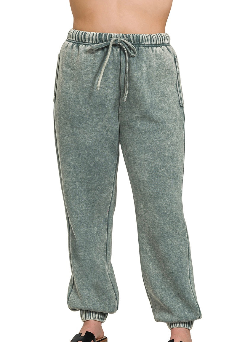 Curve Acid Wash Fleece Sweatpants with Pockets