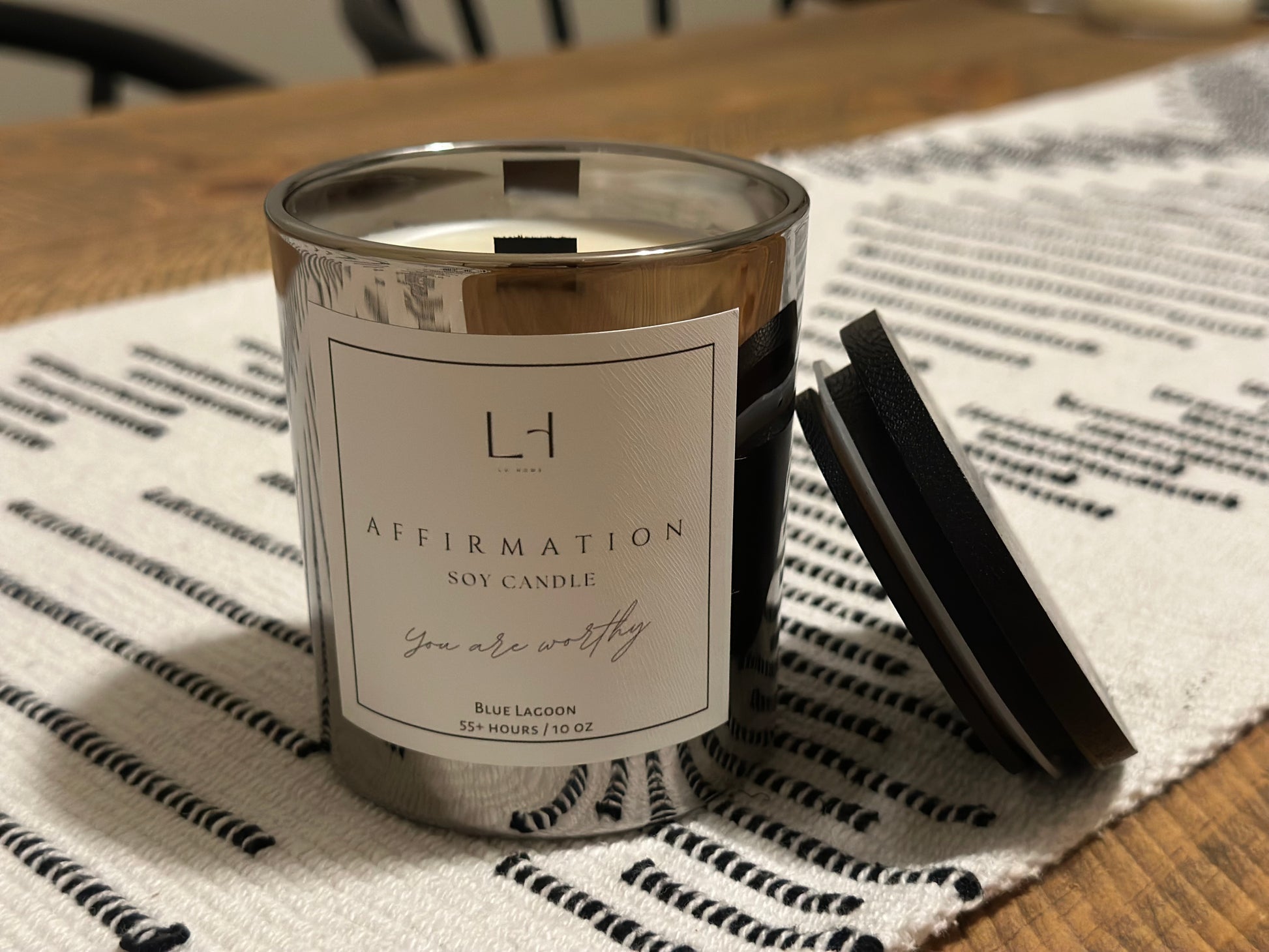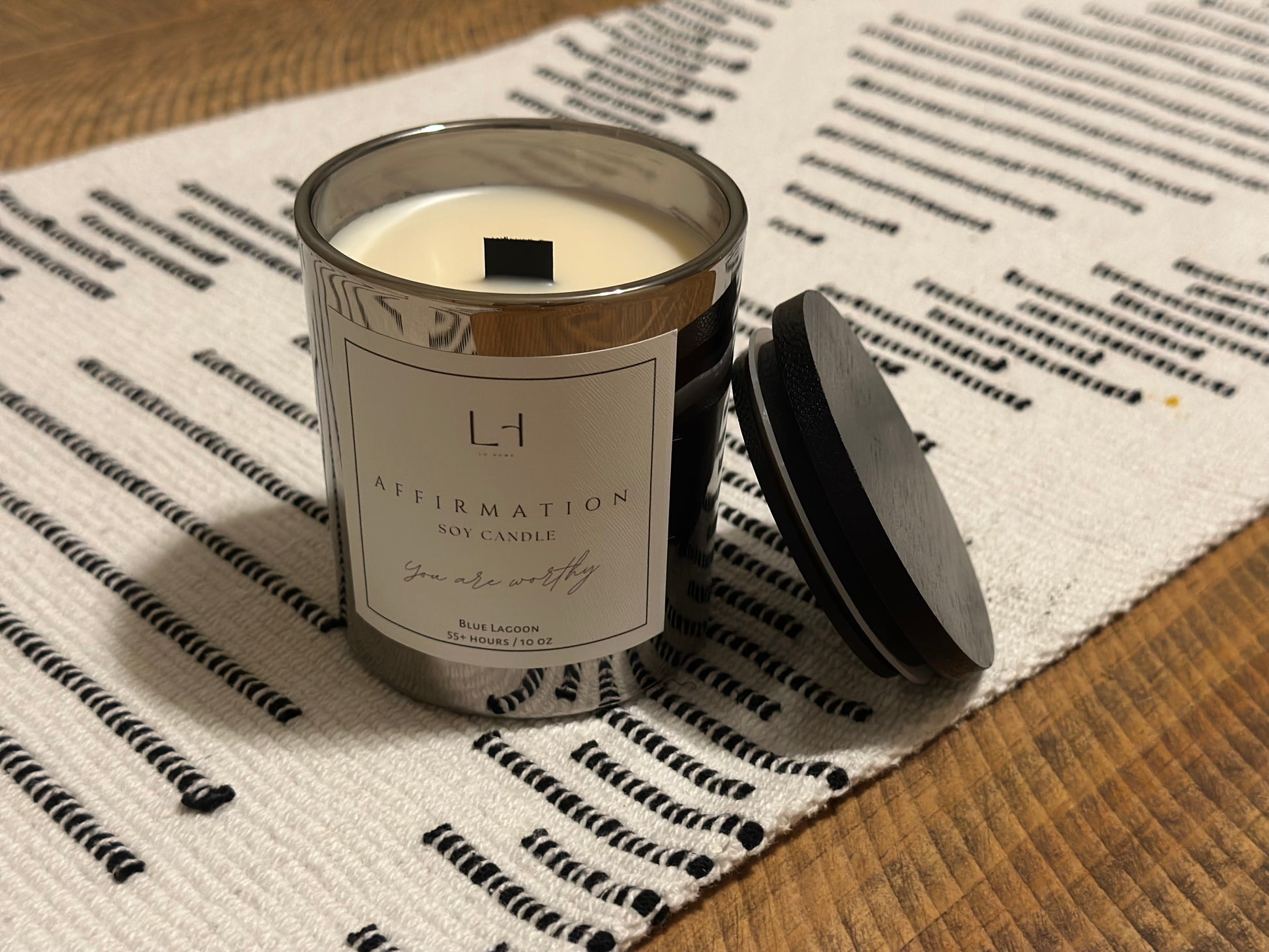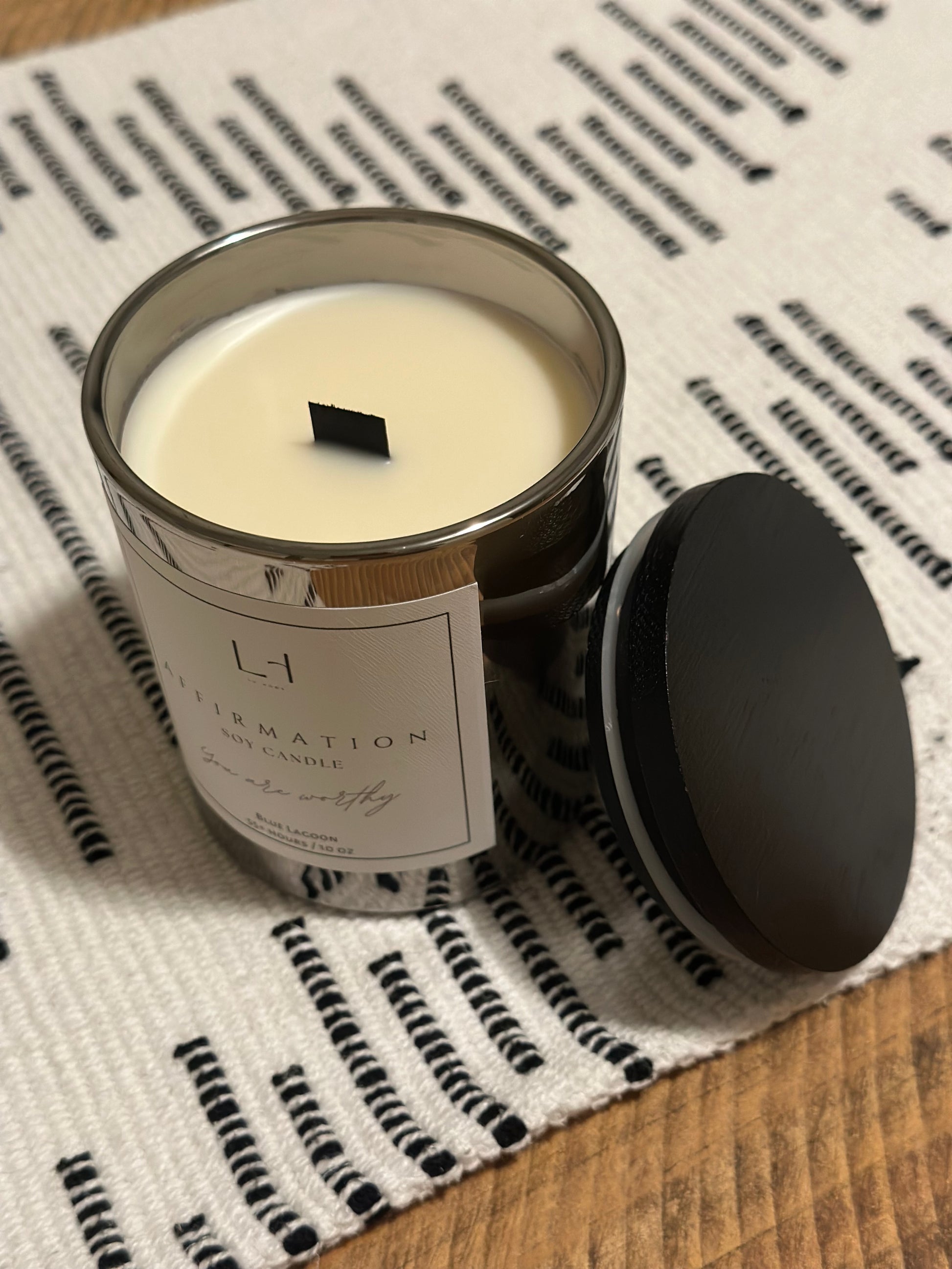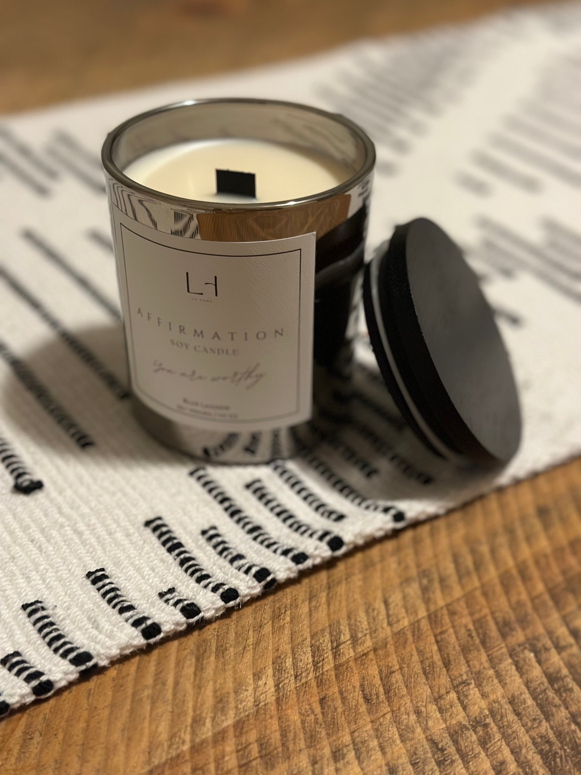From the sleek, modern vessel to the soothing black wood wick and black bamboo lid, every detail has been carefully crafted for an elegant, mindful burn. As the candle melts away, your hidden message is revealed – a special keepsake to remind you of the affirmation within. Whether you’re treating yourself or gifting someone a thoughtful sentiment, this candle brings more than just fragrance.