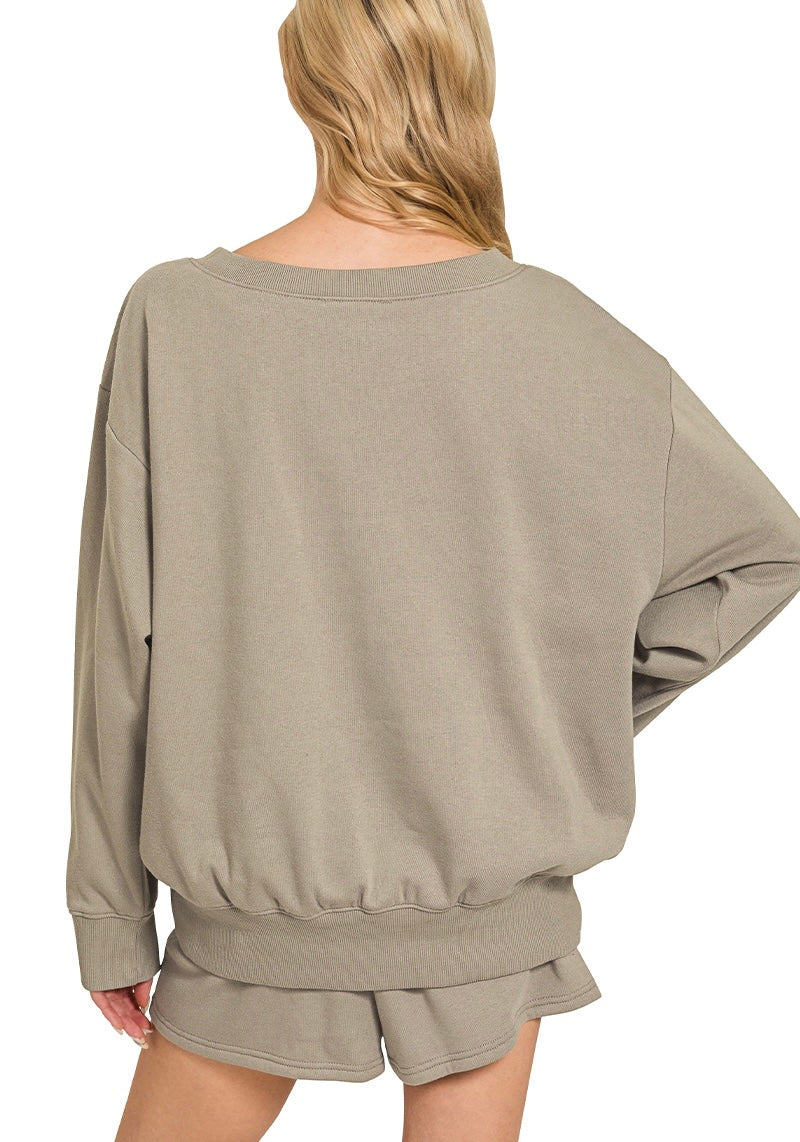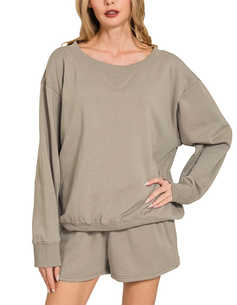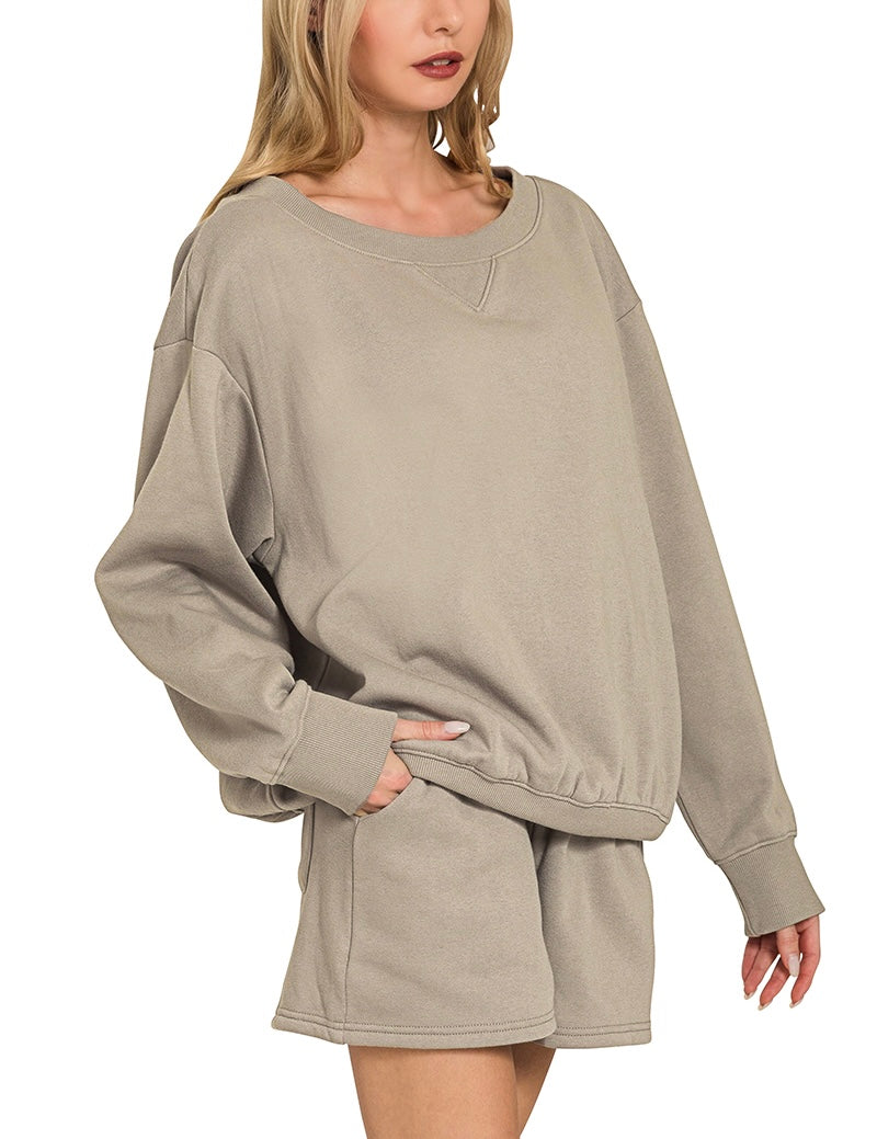 Fleece Boat Neck Sweatshirt & Short 2pc Set