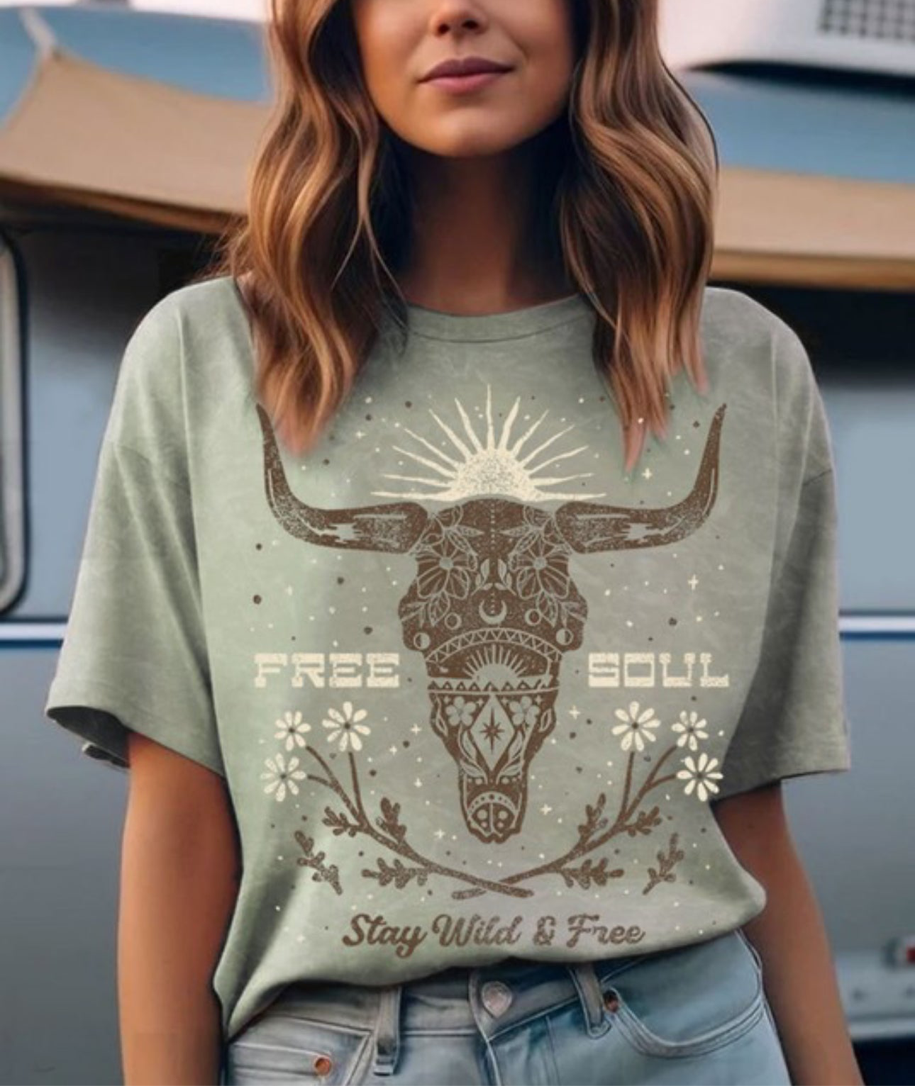 Free Soul Cow Skull Mineral Graphic T-Shirt
