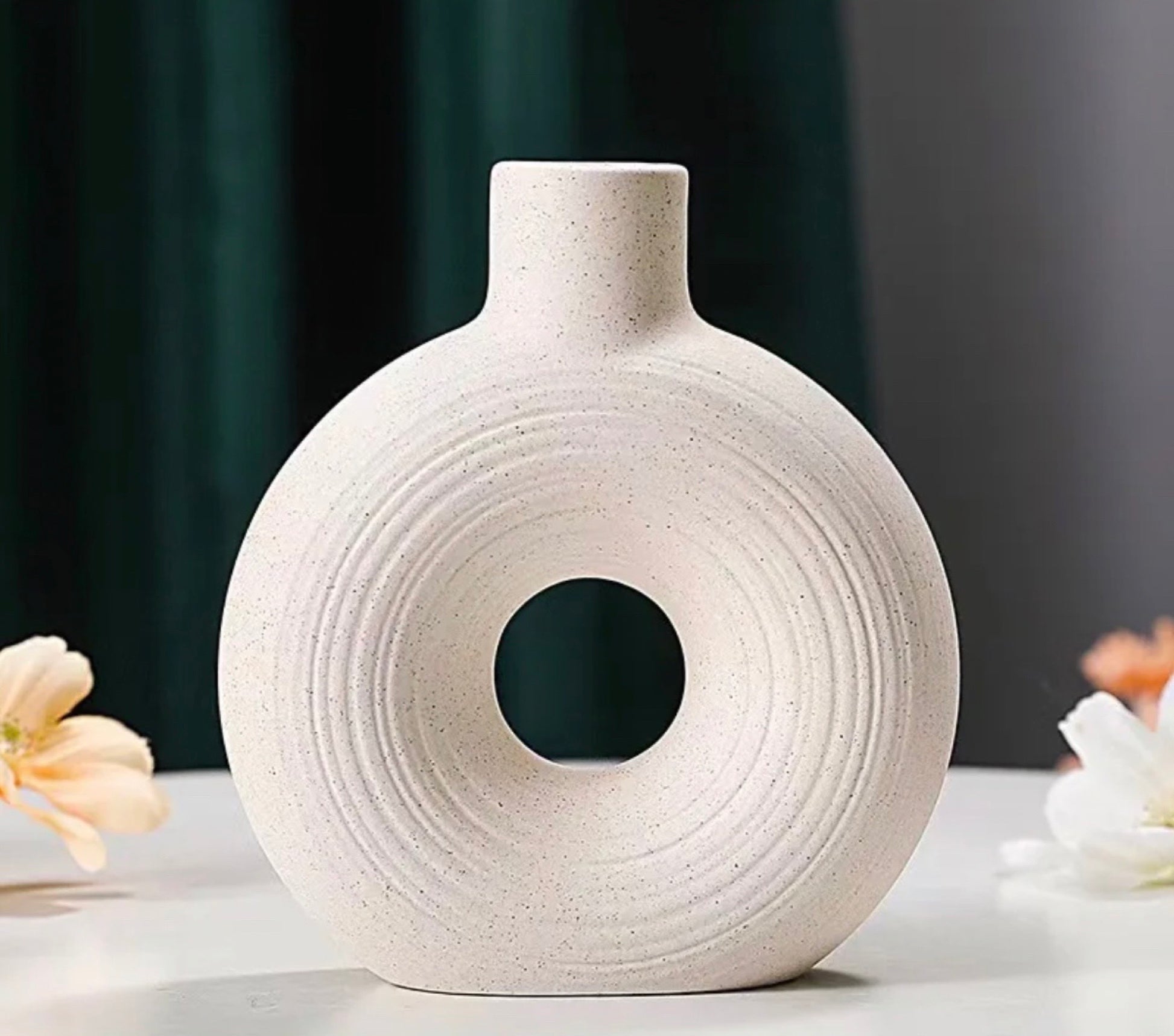 Lu home Small White Nordic Modern Circle Wet/Dry Vase