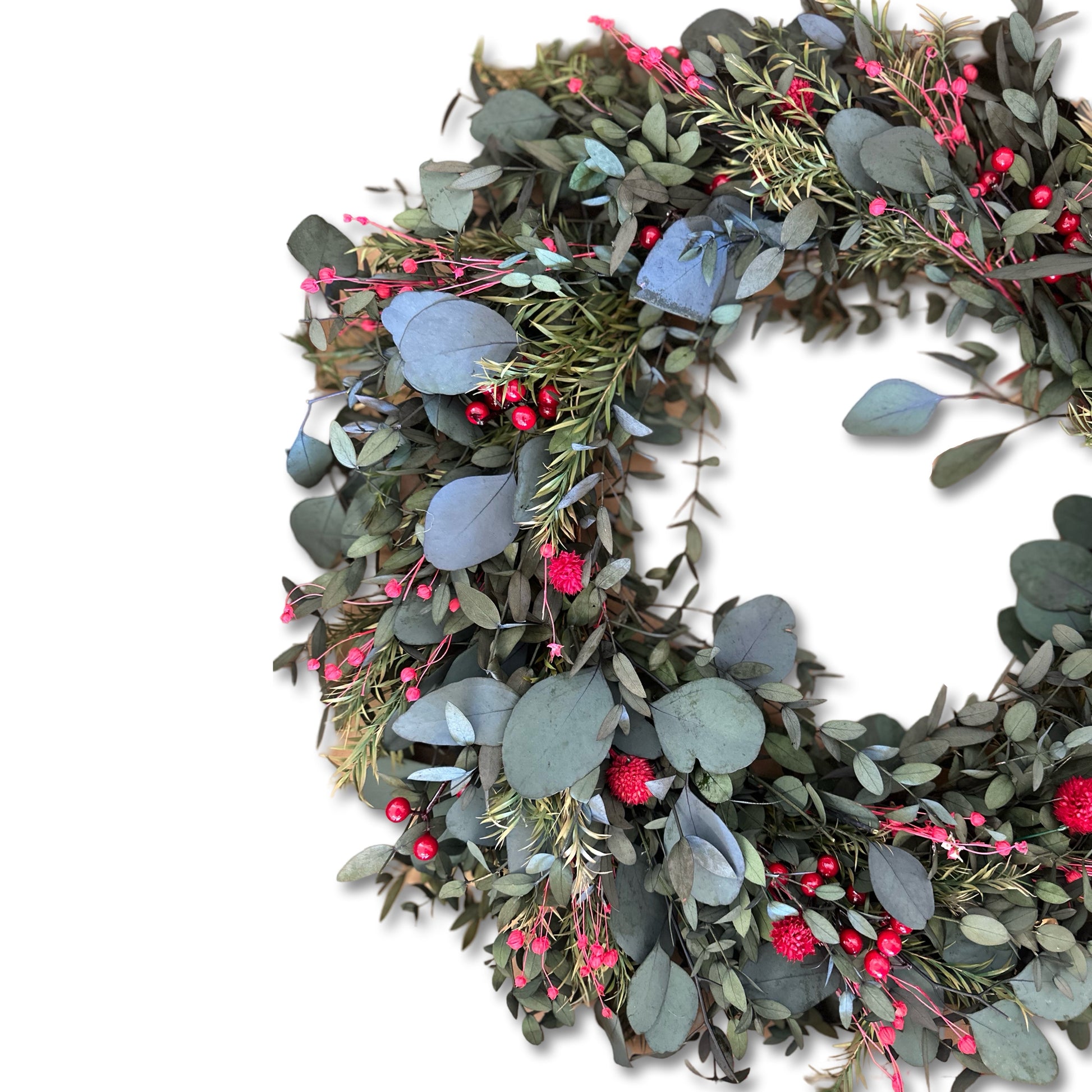 This wreath will not disappoint, with lush and robust foliage all through out, vibrant red and green & highly fragrant eucalyptus.
