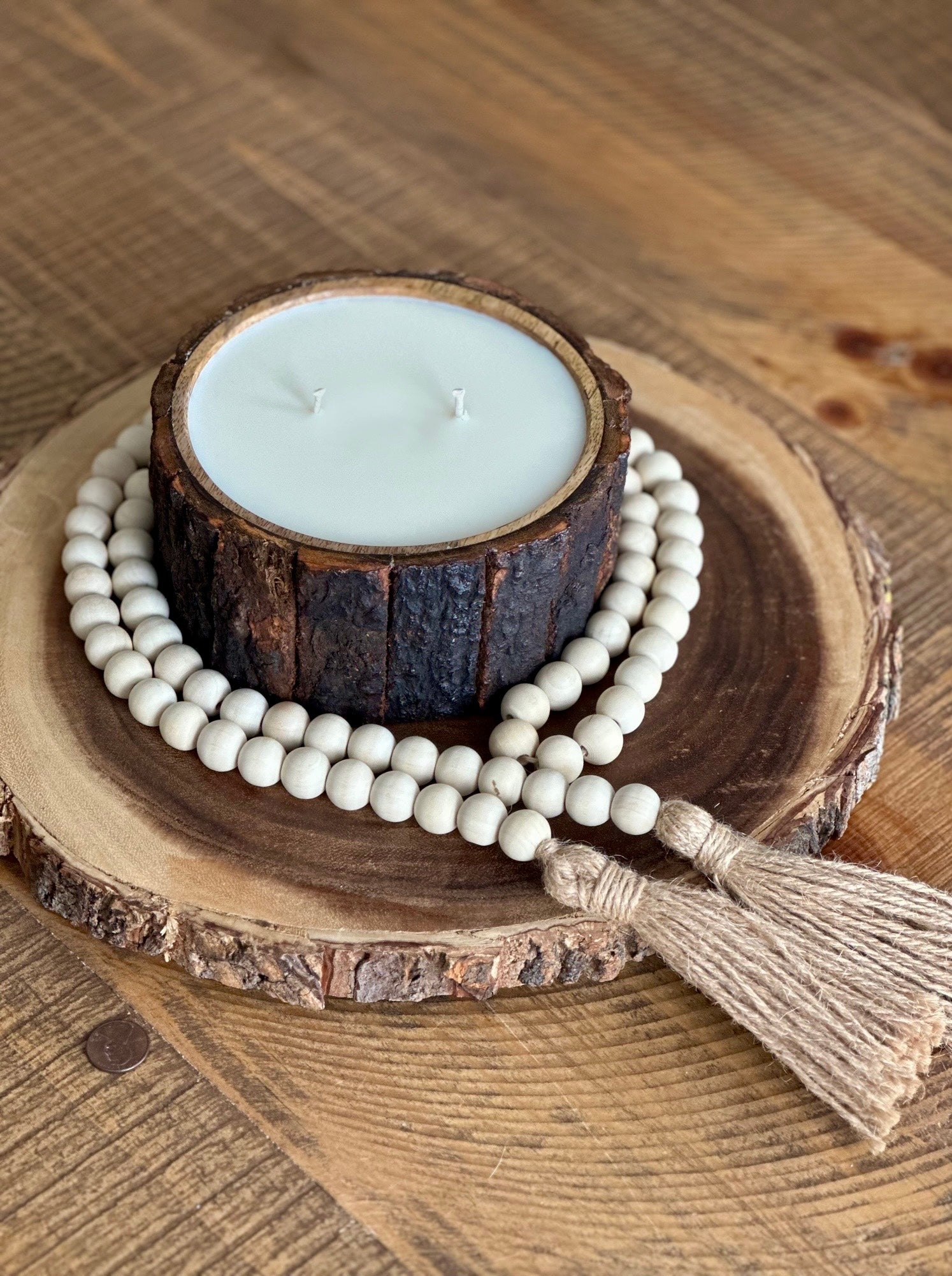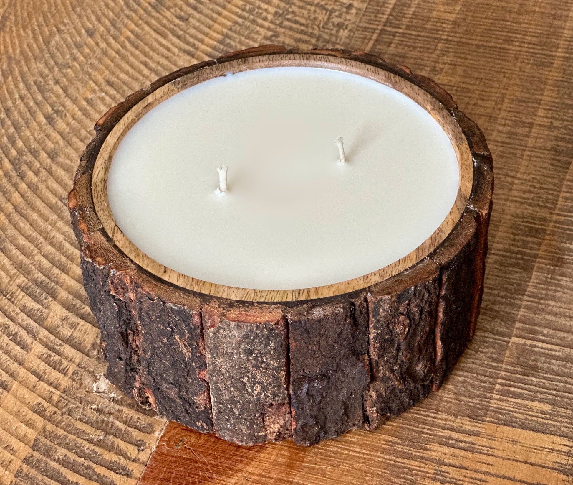 NEW The Log Homme candle great for any occasion or home and gender, featuring our fragrance Homme, a mild yet beautiful fragrance that is sophisticated, Earthy, masculine yet gentle in a rustic round log dough bowl.