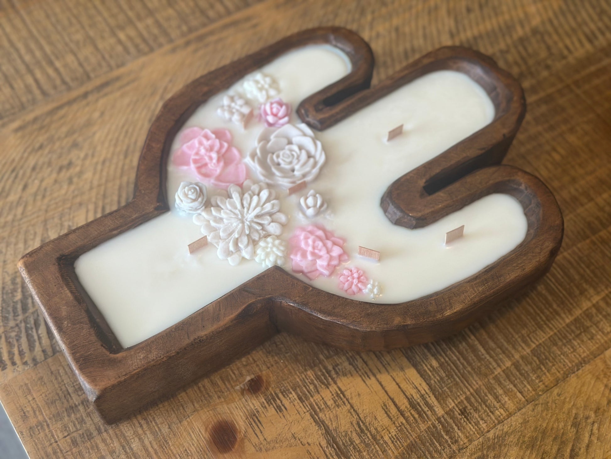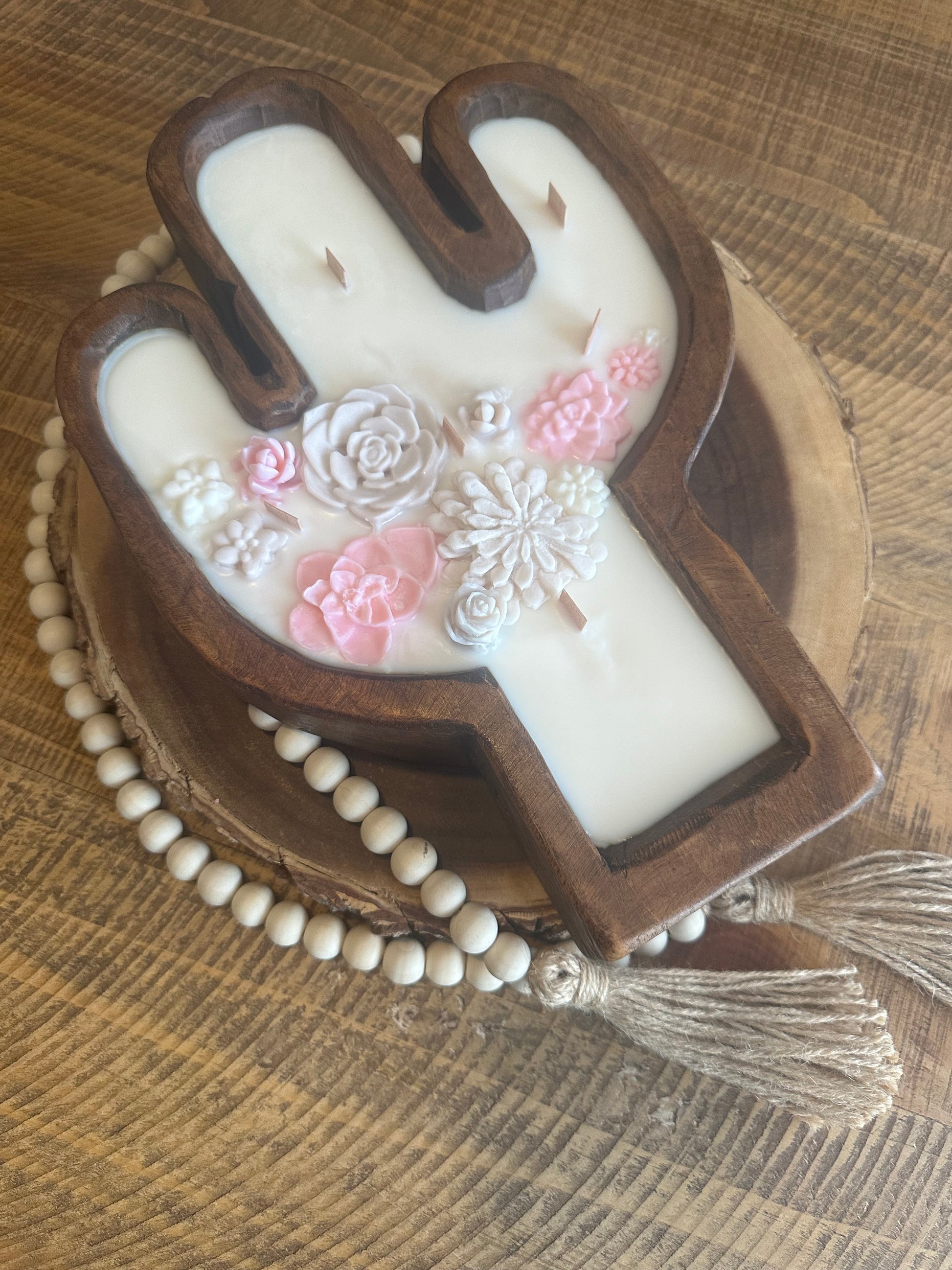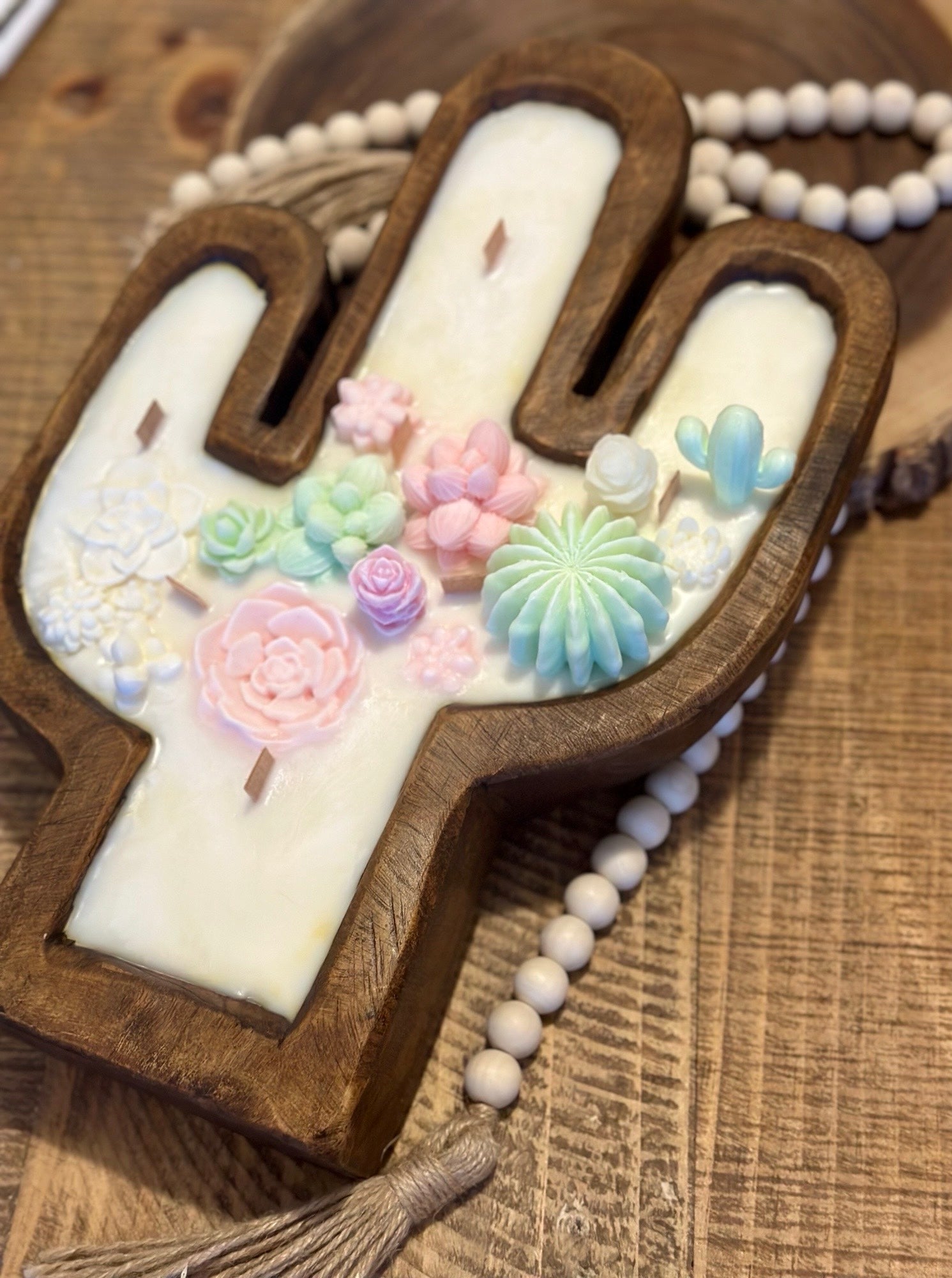 The What The Succulent Candle from our signature Botanical Garden Candle Collection, and we have more to come! A cactus garden in the wooden bowl. A combination of aesthetic design and fragrance. This will make a great housewarming gift, an accent decor piece for home, wedding or events. This is an absolute must have and a wonderful gift idea for any time of year.