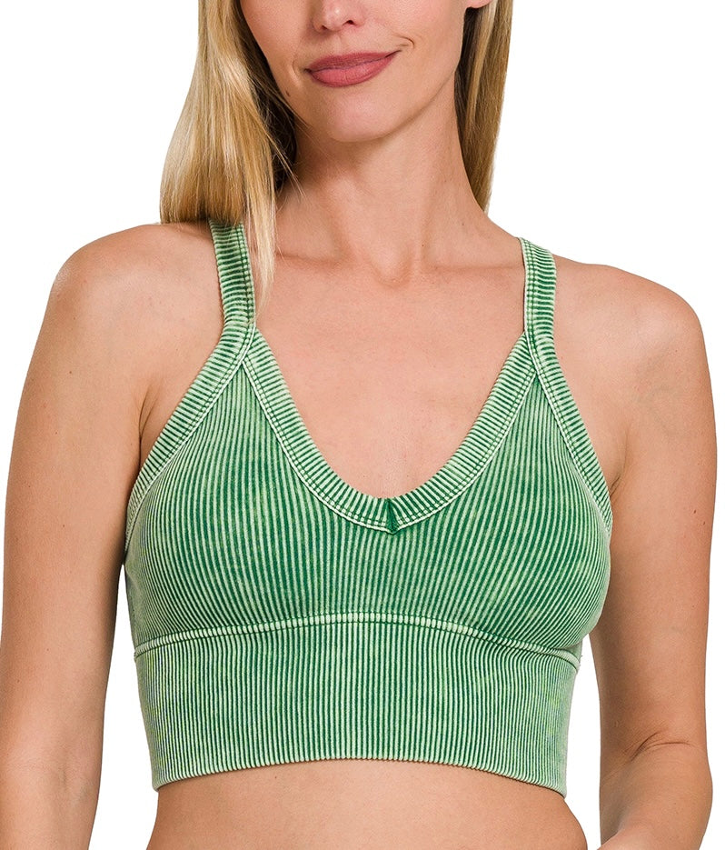Stone Washed V-Neck Seamless Cropped Bra Top