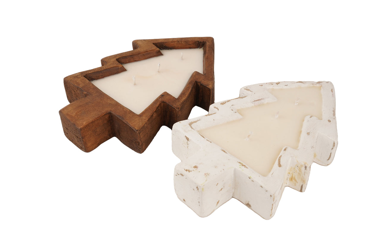 This is the perfect candle for the holiday season! Tree shaped thick carved Spanish oak wood dough bowl vessel candle with 3 all cotton natural wicks and 15+ oz. of our soy blend wax. A Limited holiday edition.