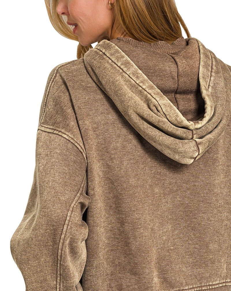 Your new go-to cozy layer is here. This Acid Wash Fleece Hoodie combines comfort, style, and that perfectly lived-in look you love. Made from a soft cotton-blend fleece, this hoodie is designed with an oversized, relaxed silhouette that’s easy to throw on with denim, leggings, or loungewear.