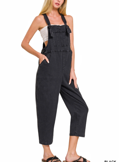 Washed Knot Strap Relaxed Fit Overalls – Effortlessly Chic & Comfy